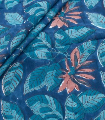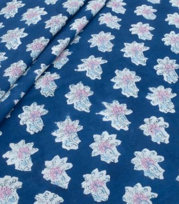 Pre-Cut 1.55m Indigo Blue Floral Handblock Printed 100% Pure Soft Cotton Fabric