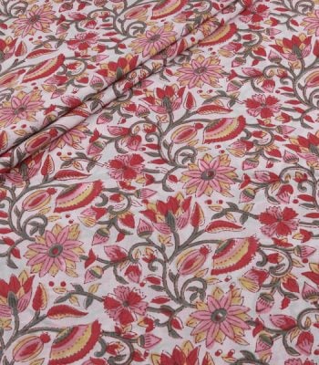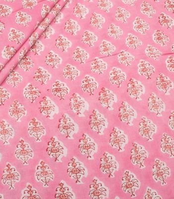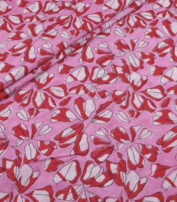 Pre-Cut 0.80m Candy Pink Floral Handblock Printed 100% Pure Soft Cotton Fabric