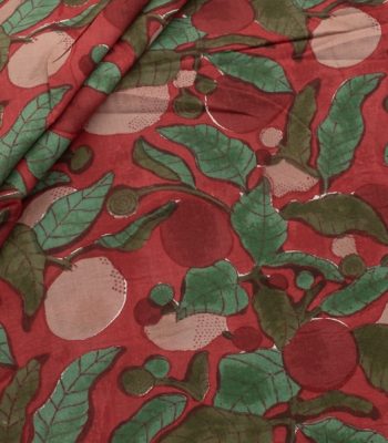 Christmas Red Mul Floral Handblock Printed 100% Pure Soft Cotton Fabric