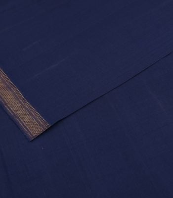 Pre-Cut 1m Oxford Blue Handwoven Zari Border Pure Cotton Fabric