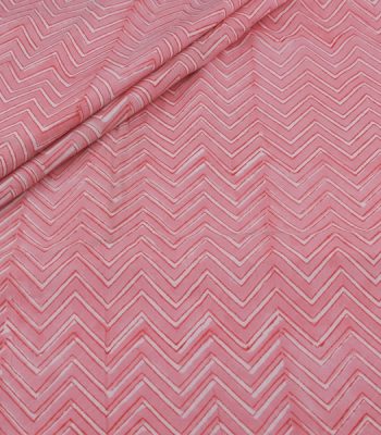 Pre-Cut 2.20m Salmon Pink Floral Handblock Printed 100% Pure Soft Cotton Fabric