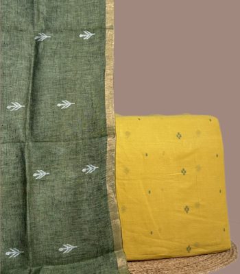 Yellow – 2pc Premium Linen Handloom Dupatta and Handloom Woven Motif Flowy Soft Cotton Top Fabric Set