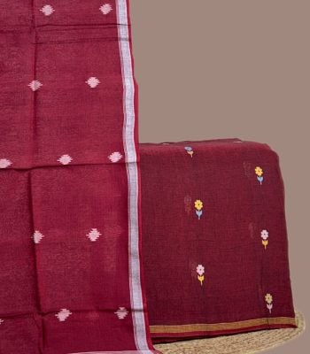 Maroon – 2pc Handloom Cotton Dupatta and Handloom Woven Design Top Fabric Set
