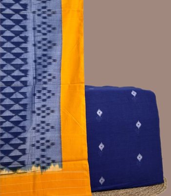 Blue – 2pc Ikkat Cotton Dupatta and Handloom Woven Motif Cotton Top Fabric Set
