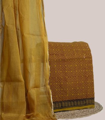 Yellow – 2pc Kota Doria Dupatta and Bagh Blockprint Top Cotton Fabric Set