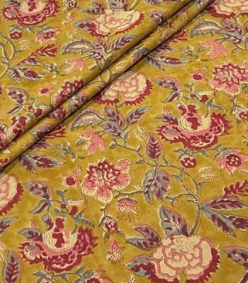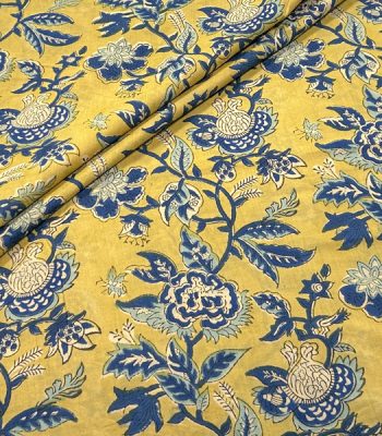 Golden Yellow Floral Handblock Printed 100% Pure Soft Cotton Fabric