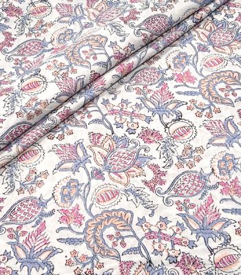 White Floral Handblock Printed 100% Pure Soft Cotton Fabric