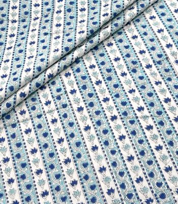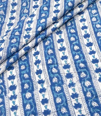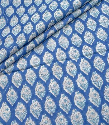 Blue Floral Handblock Printed 100% Pure Soft Cotton Fabric