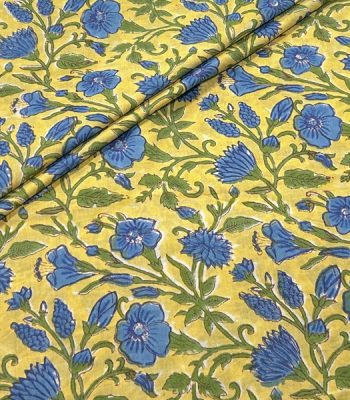 Daffodil Yellow Floral Handblock Printed 100% Pure Soft Cotton Fabric