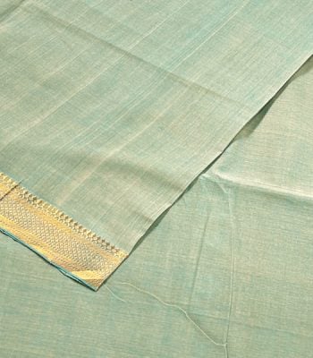 Pre-Cut 1.80m Tea Green Handwoven Zari Border Pure Cotton Fabric