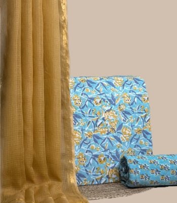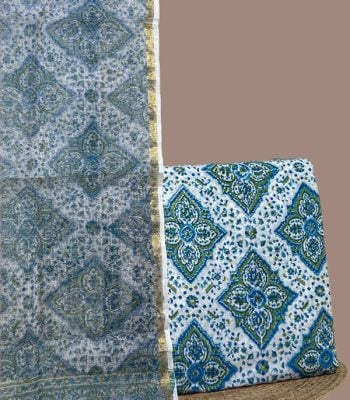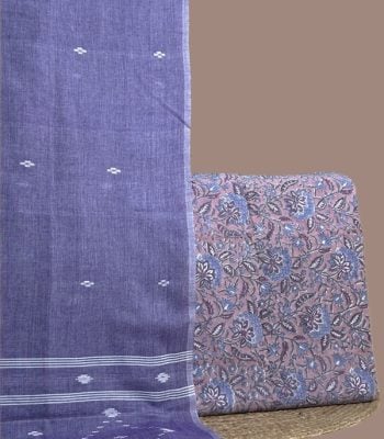 Blue – 2pc Handloom Cotton Dupatta and Blockprinted Soft Cotton Top Set