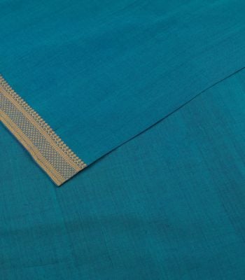 Pre-Cut 1m Pacific Cyan Blue Handwoven Zari Border Pure Cotton Fabric