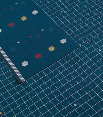 Yale Blue Handloom Intricate Border Flowy HandLoom Pure Soft Cotton Fabric