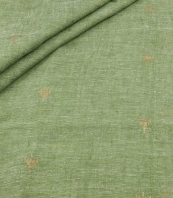 Sage Green Handloom Woven Zari Motif Pure Soft Linen Fabric