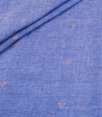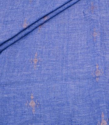 Electric Sapphire Blue Handloom Woven Zari Motif Pure Soft Linen Fabric