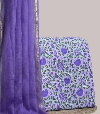 Purple – 2pc Kota Doria Dupatta and Pure Soft Cotton Blockprint Top Fabric Set