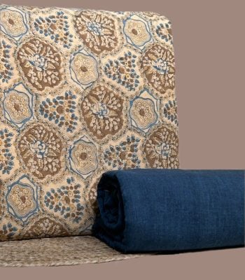 Vintage Beige Bagru Handblock Printed Cotton Fabric