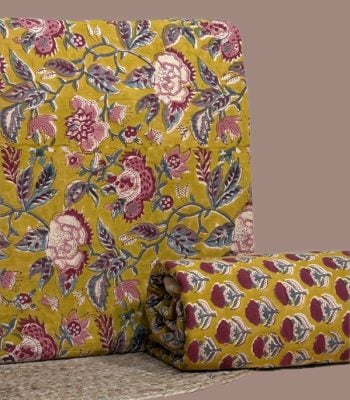Pre-Cut 1.20m Golden Yellow Floral Handblock Printed 100% Pure Soft Cotton Fabric