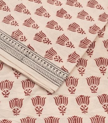 Pre-Cut 1.40m Natural White Handblock Bagh Printed Soft Cotton Fabric