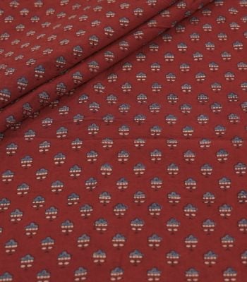 Pre-Cut 1.20m Natural Red Dye Handblock Ajrakh Printed Cotton Fabric