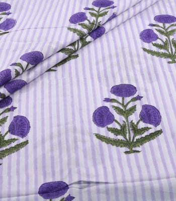 Pre-Cut 2m African Violet Stripes Handblock Printed 100% Pure Soft Cotton Fabric