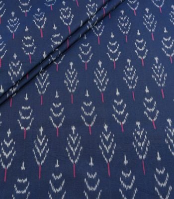 Twilight Indigo Blue Mercerised Fine Handloom Ikkat Tie-Dye Pure Soft Cotton Fabric