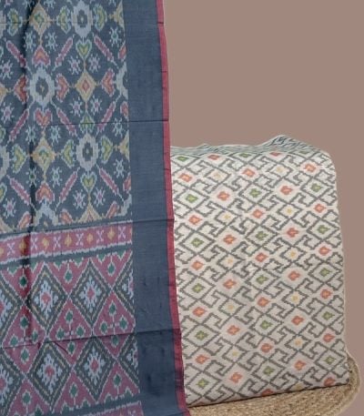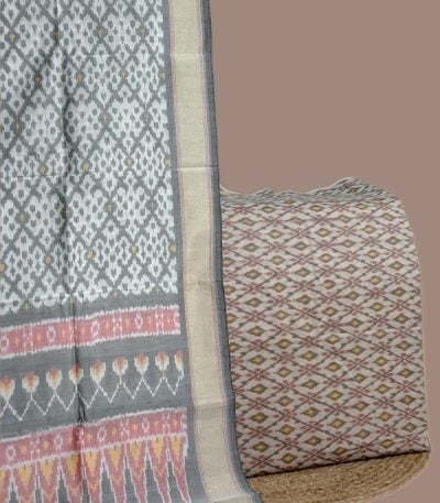 Beige – 2pc Premium Silk-Cotton Ikkat Dupatta and Soft Ikkat Cotton Silk Top Fabric Set