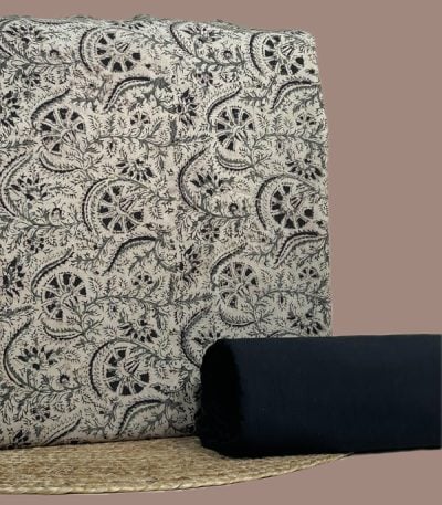 2pc Pure Soft Cotton Blockprinted Top and Bottom Fabric Set