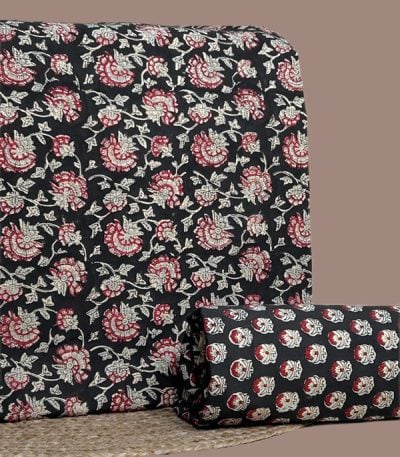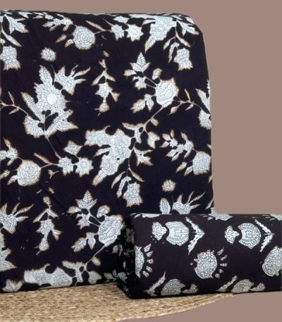 Black – 2pc Pure Soft Cotton Blockprinted Top and Bottom Fabric Set