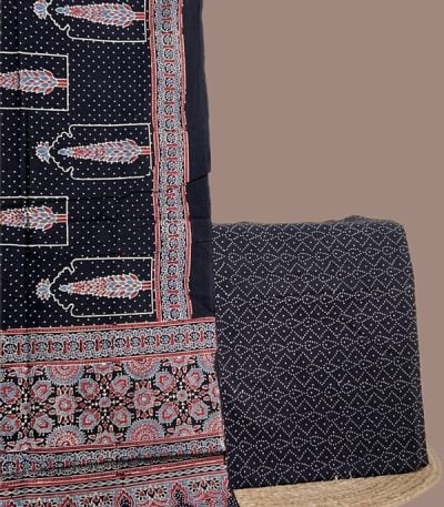 Black – 2pc Ajrakh HandCrafted Cotton Dupatta and Top Cotton Fabric Set