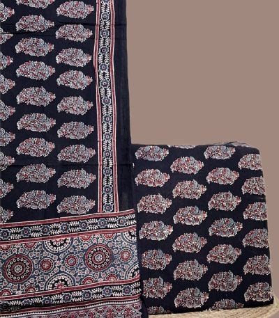 Natural Black Dye Handblock Ajrakh Printed Cotton Fabric