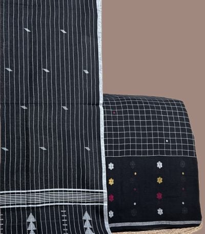Black – 2pc Handloom Cotton Dupatta and Jamdani Intricate Woven Border Top Fabric Set