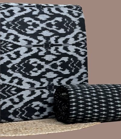 Black – 2pc Ikkat Cotton Dupatta and Handloom Soft Ikkat Cotton Top Fabric Set