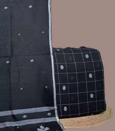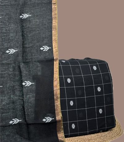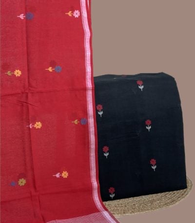 Black – 2pc Handloom Cotton Dupatta and Handloom Woven Design Top Fabric Set