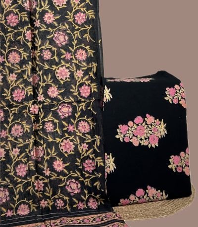 2.5mtr Each – Chanderi Silk Soft Dupatta with HandBlock Printed Pure Soft Cotton Top Fabric Set