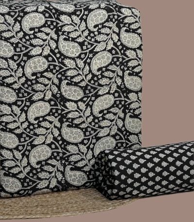 Black – 2pc Set (2.5m each) Ajrakh HandCrafted Cotton Dupatta and Top Cotton Fabric Set