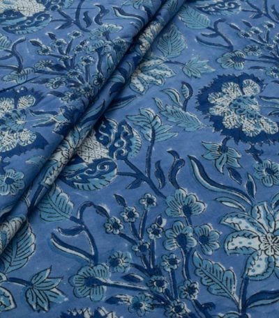 Pre-Cut 1.20m Azure Blue Floral Handblock Printed 100% Pure Soft Cotton Fabric