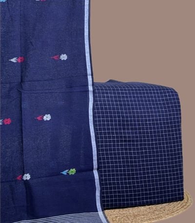 2pc Handloom Cotton Dupatta and Handloom Woven Checks Cotton Top Fabric Set