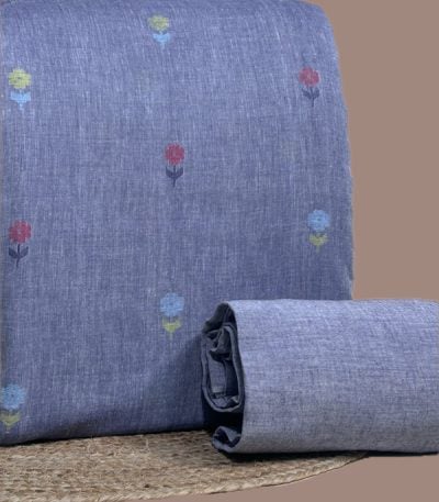 Blue – 2pc Handloom Woven Design Cotton Top and Handloom Soft Cotton Bottom Fabric Set