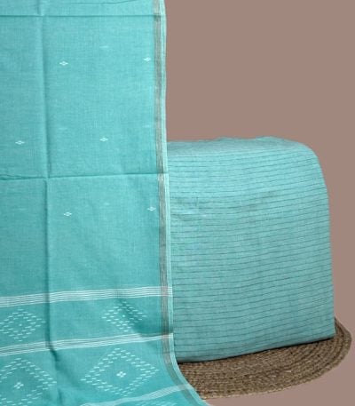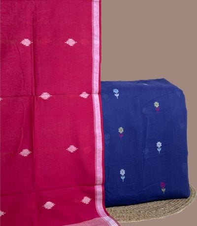 Blue – 2pc Handloom Cotton Dupatta and Handloom Woven Design Top Fabric Set
