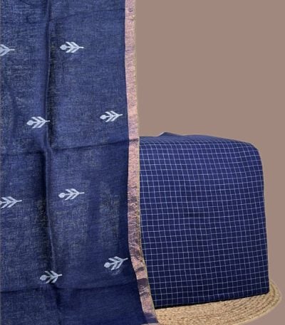 Blue – 2pc Handloom Cotton Dupatta and Mangalgiri Checks Cotton Top Fabric Set