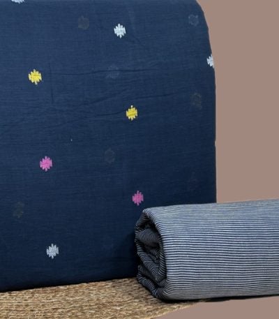 2pc Handloom Woven Design Cotton Top and Handloom Stripe Soft Cotton Bottom Fabric Set