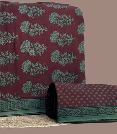 Brown – 2pc Bagh HandCrafted Top and Bottom Cotton Fabric Set