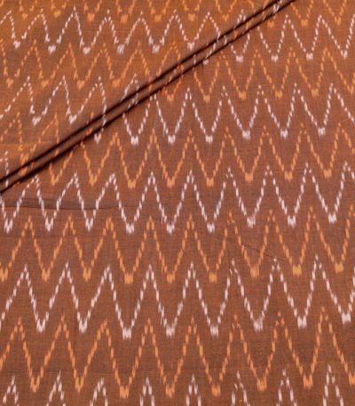 Dark Goldenrod Brown Mercerised Fine Handloom Ikkat Tie-Dye Pure Soft Cotton Fabric