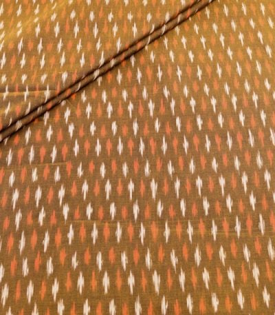 Golden Earth Brown Mercerised Fine Handloom Ikkat Tie-Dye Pure Soft Cotton Fabric