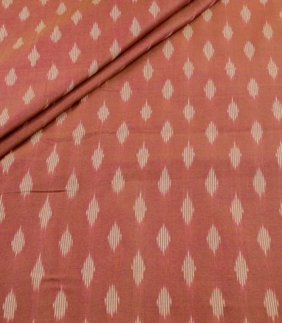 Rosy Copper Brown Mercerised Fine Handloom Ikkat Tie-Dye Pure Soft Cotton Fabric