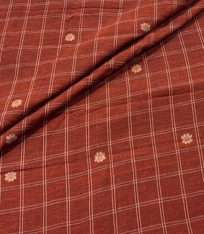 Burnt Umber Brown Checkered Woven Design Flowy HandLoom Pure Soft Cotton Fabric