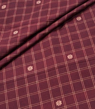 Cordovan Brown Checkered Woven Design Flowy HandLoom Pure Soft Cotton Fabric
