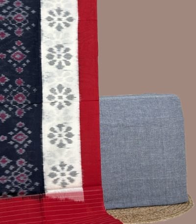 Gray – 2pc Ikkat Cotton Dupatta and Handloom Soft Cotton Top Fabric Set