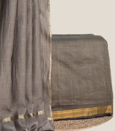 Gray – 2pc Luxe CottonSilk Dupatta and Mangalgiri Zari Border Handwoven Pure Cotton Set